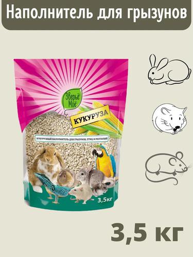 Зверьё моё Наполнитель для кошек, грызунов, птиц и рептилий Кукурузный 3,5кг
