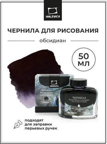 Малевичъ Чернила для рисования и каллиграфии 195240, обсидиан, 50 мл