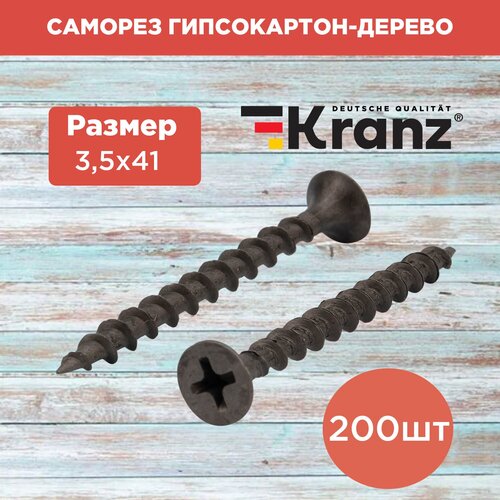 Kranz Саморез гипсокартон-дерево 3,5х41, короб (200 шт/уп), цена за 1 упак
