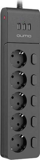 Qumo Сетевой фильтр Power Bar PRO 6SP4U, 5 розеток c выключателем, 3xUSB, 2500 Вт, 10А, 2м Черный 42091